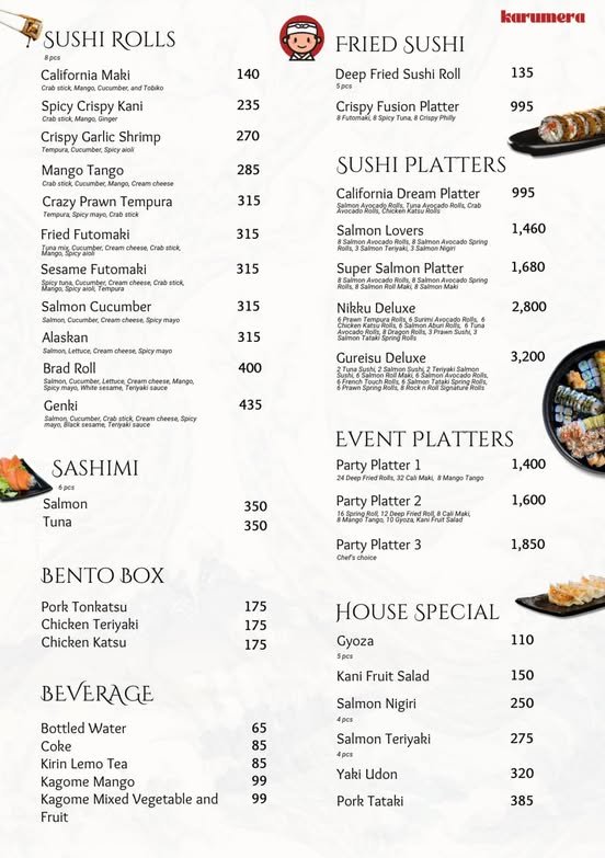 Karumera isn’t just another food spot in town — it’s a place where you can slow down, enjoy good food, and feel right at home. Whether you’re here for a quick bite or a full meal with family and friends, there’s something special waiting for you on every plate. From the cozy vibe to the rich flavors of their sushi, sashimi, and bento meals — it’s the kind of place you’ll want to visit again (and again). 🍣